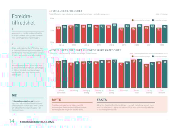 Private barnehager leverer minst like gode tilbud, sammenlignet med kommunale barnehager. De oppfyller bemanningsnormen og pedagognormen i like høy grad. De tilbyr konkurransedyktige lønns- og pensjonsvilkår. De har lavere sykefravær, større mangfold og litt mer fornøyde foreldre.