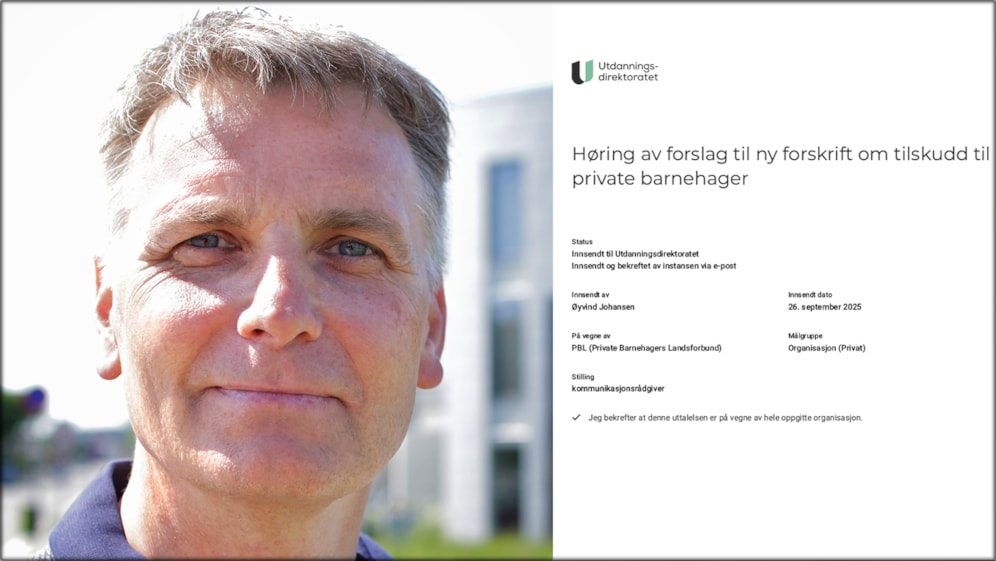– Kunnskapsdepartementet har levert et høringsforslag som nærmest er en dødsattest for mange private barnehager. Dette er helt i strid med de klare bestillingene fra Stortinget i juni. Derfor er vi nå igjen i en situasjon der PBL, andre organisasjoner og barnehagene må si tydelig ifra, sier Jørn-Tommy Schjelderup.